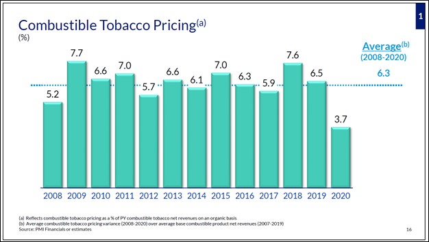 Image Shown: Philip Morris utilizes its brand power to push through continuous price increases at its traditional cigarette offerings, such as those sold under its Marlboro brand. This enables the firm to maintain and even grow its cash flows, even though unit volumes of its traditional cigarette offerings are in secular decline. Image Source: Philip Morris – April 2021 IR Presentation