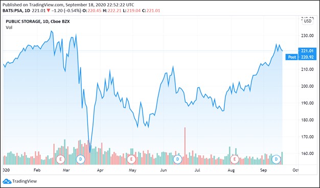 Image Shown: Shares of Public Storage have recovered a considerable amount of lost ground since the pandemic-induced drop in March 2020. We continue to like Public Storage as a holding in our High Yield Dividend Newsletter and are big fans of self-storage companies with significant exposure to the US.