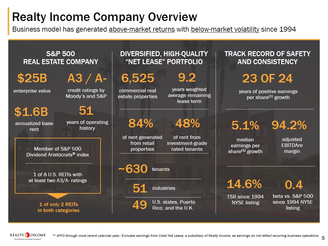 This news indicates that Realty Income continues to possess access to debt markets at attractive rates, which we appreciate. Please keep in mind Realty Income carries high quality investment grade credit ratings (A3/A-) and is one of only a handful of REITs that carries A-rated credit ratings.