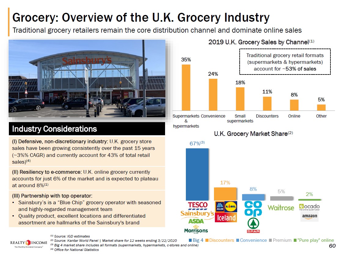 Image Shown: Realty Income appears to be considering pushing deeper into the UK commercial property market by acquiring properties that cater to grocery stores, convenience stores, supermarkets, and similar entities/operations. Image Source: Realty Income – First Quarter of 2020 Earnings IR Presentation