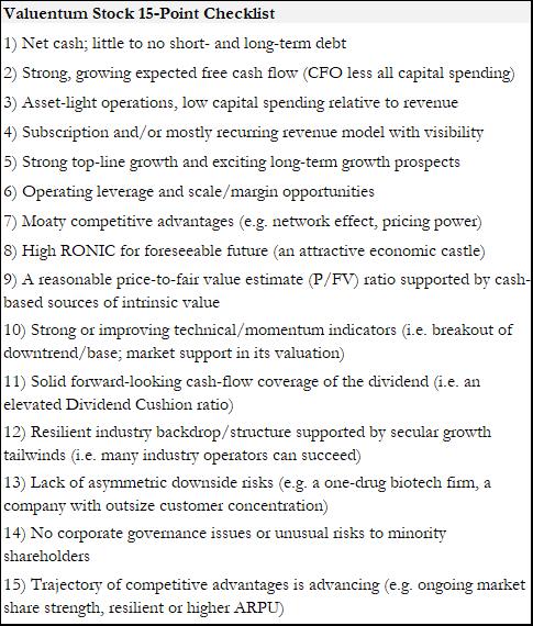 The figure above includes some of the characteristics commonly found in Valuentum stocks.