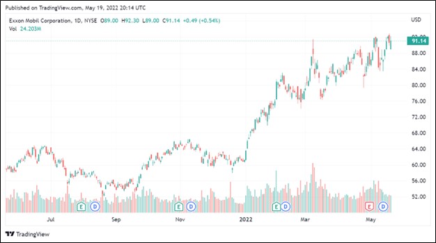 Image Source: Newsletter portfolio idea Exxon Mobil Corporation has seen its share price boom higher over the past year. We see room for additional capital appreciation upside potential going forward.