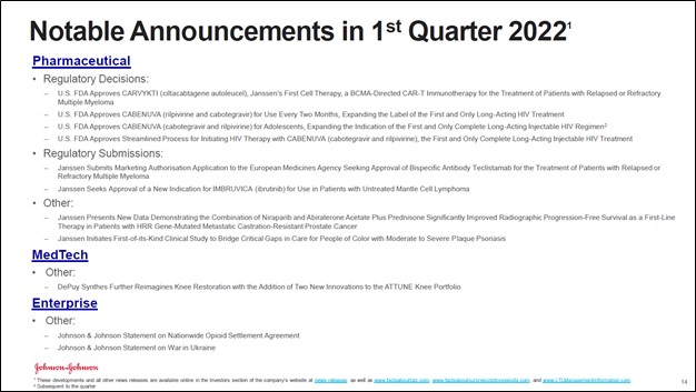 Image Shown: We appreciate J&J’s focus on innovation and how that is supporting its efforts to launch new products and services, which underpins its bright growth outlook. Image Source: J&J – First Quarter of 2022 IR Earnings Presentation
