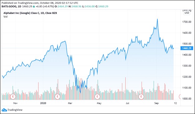 Image Shown: Shares of Alphabet Inc Class C shares, a top-weighted holding in our Best Ideas Newsletter portfolio, have performed very well over the past year. Going forward, we see room for significant capital appreciation upside as the digital advertising market has proven to be very resilient of late.