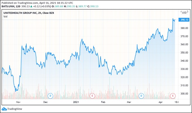 On April 15, health insurance and health care solutions provider UnitedHealth Group Inc (UNH) reported first quarter 2021 earnings that beat both consensus top- and bottom-line estimates. In conjunction with the earnings update, management raised the company’s full-year adjusted (non-GAAP) EPS forecast for 2021 up to $18.10 – $18.60 versus $17.75 – $18.25 previously. At the midpoint of guidance, the company’s new forecast represents ~9% growth over its 2020 adjusted EPS of $16.88.