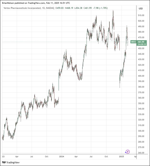 Vertex Pharma (VRTX) reported mixed fourth quarter results February 10 with revenue outpacing the consensus forecast, but non-GAAP earnings per share coming in a bit light relative to expectations. In the quarter, product revenue increased 16% thanks to the continued performance of TRIKAFTA/KAFTRIO. In the U.S., net product revenue increased 17%, while net product revenue outside the U.S. increased 14%. GAAP and non-GAAP net income in the quarter came in at $913 million and $1.0 billion, respectively, lower than the $969 million and $1.1 billion, respectively, for the fourth quarter of 2023.