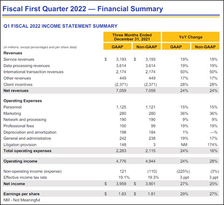 Image Shown: Visa’s financials are trending in the right direction. Image Source: Visa – First Quarter of Fiscal 2022 Earnings Press Release
