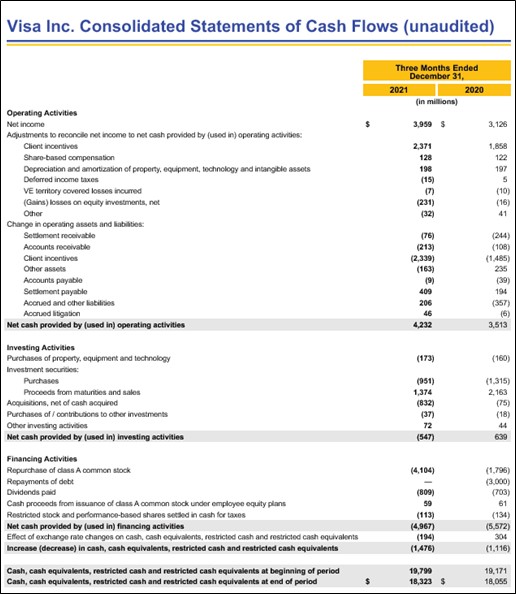 Image Shown: Visa is a free cash flow cow due to the asset-light nature of its business model. Image Source: Visa – First Quarter of Fiscal 2022 Earnings Press Release