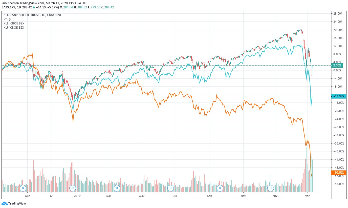 We’re maintaining our S&P 500 target range of 2,350-2,750, which was breached recently, and our favorite ideas are always included in the Best Ideas Newsletter portfolio, Dividend Growth Newsletter portfolio, High Yield Dividend Newsletter portfolio and the Exclusive publication. Look there for ideas first and foremost. We removed the Energy Select Sector SPDR ETF (XLE) and the Financial Select Sector SPDR (XLF) in August of last year, a timely move to rid the newsletter portfolios of meaningful energy and banking exposure prior to this swoon. We think avoiding energy and banking entities will remain a source of alpha in the coming periods, and we are skeptical that any fiscal stimulus package will stave off this crisis (if a package is rejected by Congress, it could set up the markets for the next leg down).